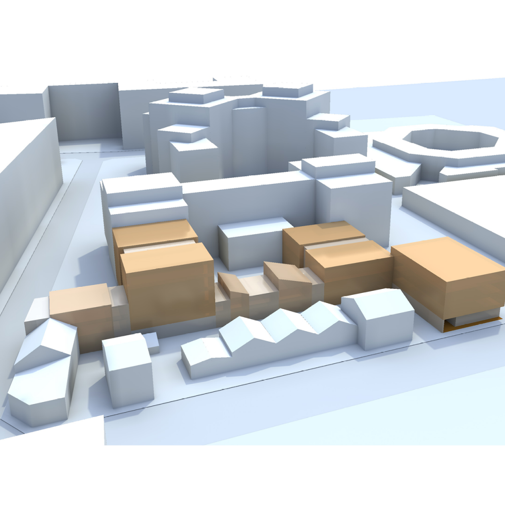 L’enjeu : faire la transition entre tissus parvilonnaire et bureaux R+7.